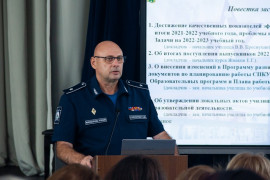 Об особенностях учебного плана СПКУ доложил заместитель начальника училища по учебной работе Сергей Владимирович Степанов. Тема его доклада: «О внесении изменений в Программу развития СПКУ на 2021-2025 годы и утверждении документов по планированию работы СПКУ на 2022-2023 учебный год: Образовательных программ и Плана работы училища на 2022-2023 учебный год».