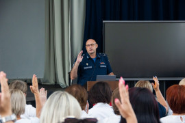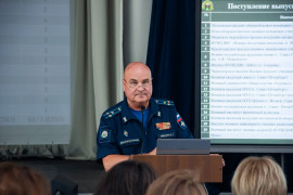 Об итогах поступления выпускников 2022 года в вузы Министерства обороны Российской Федерации доложил начальник выпускного учебного курса Евгений Геннадьевич Жмакин. 19 военных вузов выбрали для дальнейшего обучения выпускники СПКУ 2022 года.