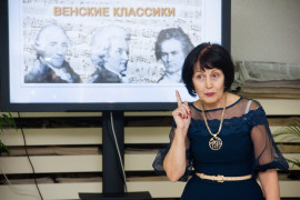 Антонина Аркадьевна Рудова, педагог ОД (дополнительных образовательных программ) рассказала слушателям об особенностях творчества каждого композитора, подчеркнула их гениальность и их заслуги.
