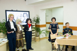 Встречу в музыкальной гостиной организовали и провели преподаватели ОД (иностранный язык) Галина Ивановна Воронина, Раиса Петровна Козаченко и Мария Евгеньевна Хован в сотрудничестве с Антониной Аркадьевной Рудовой – педагогом ОД (дополнительных образовательных программ) и воспитанником 11 «Г» класса Даниилом Волгиным.