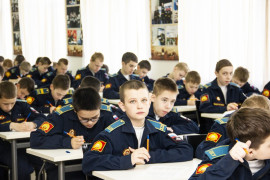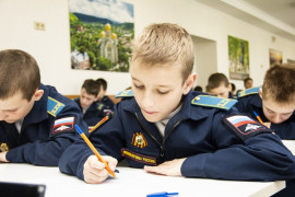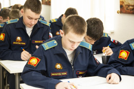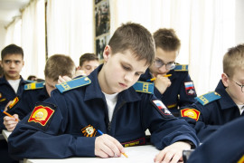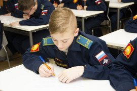 Во время внешнего тестирования воспитанники учебных курсов 5-х классов писали проверочные работы по математике, 6-х классов – по русскому языку. Кадеты учебного курса 7-х классов выполняли контрольные работы по обществознанию и физике.