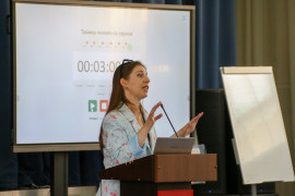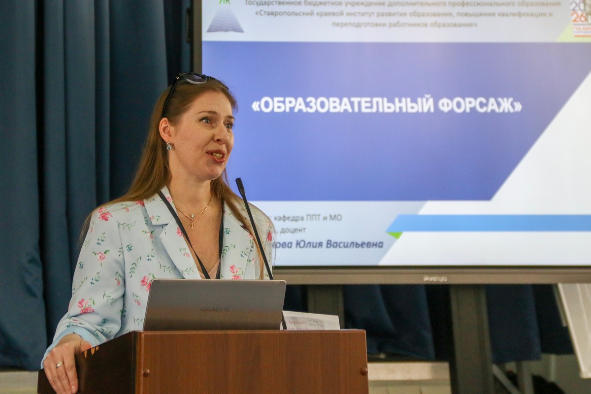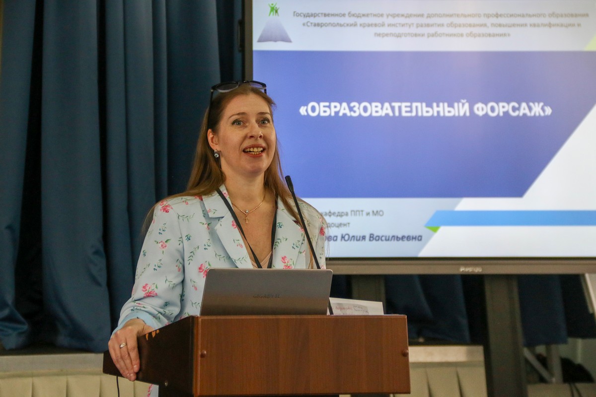 Юлия Васильевна Королькова, кандидат педагогических наук, доцент Ставропольского краевого института развития образования, провела для участников «Образовательный форсаж» – интеллектуальный марафон инновационных идей.
