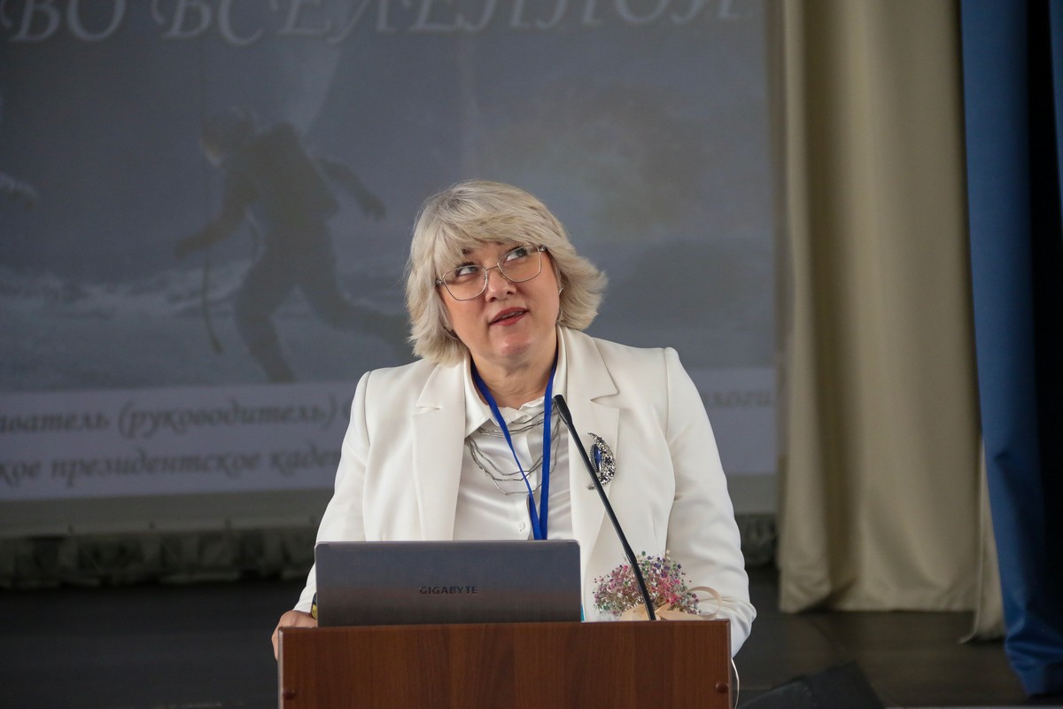 Татьяна Николаевна Свирская, преподаватель (руководитель дисциплины) отдельной дисциплины (физика, химия и биология) СПКУ, выступила с докладом о нравственном значении роли человека во Вселенной.
