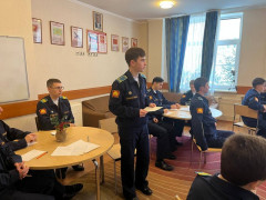 Во время классного часа как в групповой работе, так и индивидуально были рассмотрены вопросы на тему: «Родина» и «Выбор будущей профессии». У воспитанников была возможность дать своё собственное определение такому непростому, но ёмкому слову «Родина», а также, с помощью нескольких отдельных слов, представить окружающим видение своего родного края. Во второй части мероприятия воспитатель напомнил кадетам о главном переломном моменте в их жизни в следующем учебном году – выборе будущей профессии. Воспитанники аргументированно представили свои доводы к вопросу: «Военная или гражданская профессия – «за» или «против?». Анализируя профессиональные и личностные качества военнослужащих, сделали вывод, что профессиональные качества у всех разные, а вот личностные везде одинаковые. Несмотря на то, что гражданские профессии, безусловно, интересны и полезны обществу, подавляющее большинство кадет – участников опроса – отдали предпочтение профессии военнослужащего.