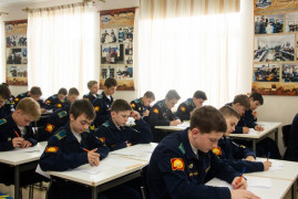 Кадеты уже написали проверочные работы по русскому языку и математике, им предстоит ещё проверить свои знания по таким предметам как биология, география, физика, химия, история, обществознание.