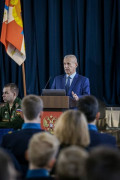 Александр Алтунин, выступая перед аудиторией, сделал акцент на исторических фактах и военных подвигах Александра Суворова.