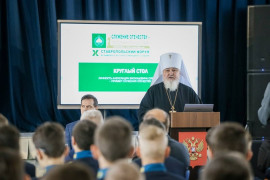 Возглавил работу круглого стола председатель Синодального отдела по взаимодействию с Вооружёнными Силами и правоохранительными органами – митрополит Ставропольский и Невинномысский Кирилл.