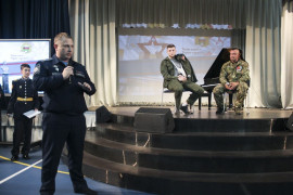 В минувшую субботу в гости к кадетам 2 курса пришли герои специальной военной операции – бойцы 247-ого гвардейского десантно-штурмового Кавказского казачьего полка: гвардии сержант, заместитель командира 1 разведывательного взвода разведывательной роты Вячеслав Алексеевич Запруднов и младший сержант, командир отделения разведывательной роты Александр Александрович Медведев, а также активисты волонтёрской группы – «ZOV – надёжный тыл. Своих не бросаем».