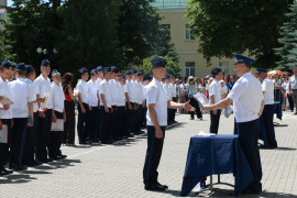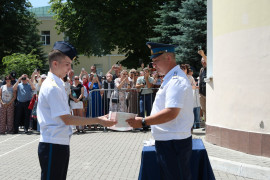 В Ставропольском президентском кадетском училище состоялось торжественное построение, посвященное вручению аттестатов об основном общем образовании девятиклассникам. Разделить радость торжества вместе с кадетами пришли их родные и близкие, наставники и педагоги. Учебный курс 9-х классов Ставропольского ПКУ успешно прошёл обучение, завершил учебный год, показав хороший уровень качества знаний, 20 девятиклассников получили аттестат особого образца с отличием.
