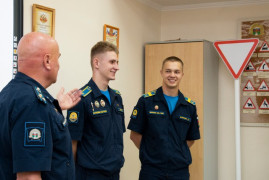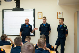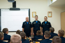 В Ставропольском президентском кадетском училище на занятие по Основам безопасности и защиты Родины (ОБЗР) у воспитанников 2 учебного курса, которое проводил преподаватель ОБЗР Евгений Геннадьевич Жмакин, пришли выпускники СПКУ 2022 года. Сегодня они курсанты военных вузов – Даниил Кузнецов, Илья Черномордов и Вадим Салий.