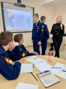 Вместе с курсовым педагогом-психологам Мариной Викторовной Рязанцевой кадеты-семиклассники учатся методам эмоциональной саморегуляции, конструктивным формам взаимодействия друг с другом, знакомятся с эффективными способами разрешения конфликтов. Используемые психологические техники позволяют устранить эмоциональные барьеры между участниками группы, в безопасной и доверительной обстановке исследовать личные границы, лучше узнать друг друга и смело говорить о своих чувствах и эмоциях.
