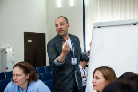 – Важно понимать контингент, с которым мы работаем. Если мы хотим заниматься педагогикой, воспитанием, развитием, мы должны понимать, кто к нам приходит каждый день в класс, как меняются эти люди, как внешние события отражаются на наших учениках. Это касается воспитания и обучения как детей, так и взрослых людей. Я приведу в пример несколько трендов из тех, которые мы успели внедрить в нашем центре знаний. Итак, современные тренды. Это многоформатность программы. Сейчас идёт очень большой запрос на то, чтобы в разных программах сочетались различные направления – аудиторная нагрузка, проектная работа, индивидуальная консультация. Мы у себя реализуем такие направления, как перипатетика, это когда люди идут в поход на гору и с ними идёт гид и даёт информацию. Ещё один тренд – игровые форматы и геймификация образовательного процесса. Использование различных форматов позволяет разнообразить и с большим вовлечением привлечь участников образования в процесс получения знания.