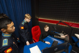 О работе радиожурналистов, службы новостей, радиоведущих, о том, как технически устроено радио, что такое пульт, микрофон и наушники, о правилах вёрстки новостей и орфоэпии – обо всём этом кадеты узнали «из первых уст». Кадеты встретились с шеф-редактором и журналистом Валерием Беликовым, ведущей вечернего радиоэфира Жанной Бердиевой, радиоведущими Татьяной Писаревой и Деном Морозовым. Все они рассказали о своей работе и провели экскурсию по современному радио.
