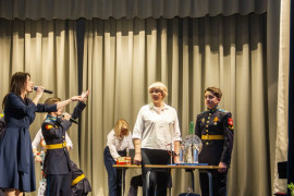 Но пришло время подводить итоги. После небольшого театрального пролога, в котором кадеты и педагоги показали, как проходили мероприятия в рамках «Научной среды» в училище, ко всем с приветственным словом обратился заместитель начальника училища по учебной работе Сергей Владимирович Степанов.