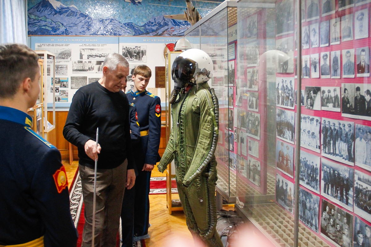Сразу по прибытии в училище нашим кадетам провели обзорную экскурсию по высшему учебному заведению, показали различные модели самолётов, ставропольские кадеты смогли примерить на себя лётное обмундирование и современные шлемофоны пилотов. Также наших кадет познакомили с музеем училища, ребята побывали и в учебном корпусе, посмотрели аудитории, где проходят теоретические занятия у будущих лётчиков-истребителей.