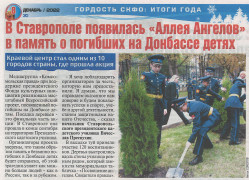 В Северо-Кавказском федеральном округе назвали главные события уходящего 2022 года. В приложении «Гордость СКФО» к газете «Комсомольская правда» одним из них названо появление «Аллеи Ангелов» в память о погибших на Донбассе детях.