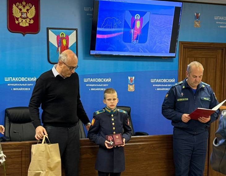 В администрации Шпаковского муниципального округа, расположенного в городе Михайловске, состоялось значимое событие: кадет 5 «Д» класса Ставропольского президентского кадетского училища Денис Дмитриевич Макаренко, как старший сын, получил награду, посмертно присужденную его отцу, Макаренко Дмитрию Леонидовичу. Церемония вручения состоялась за день до одиннадцатилетия Дениса.