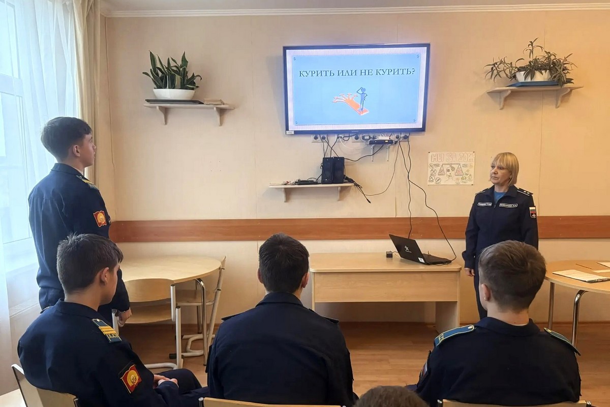 В Ставропольском президентском кадетском училище состоялась важная встреча, посвящённая профилактике вредных привычек. Воспитатель 10 "А" класса Наталья Петровна Кожурина и кадет Дмитрий Белозеров провели для воспитанников открытый классный час на тему «Быть или не быть…». Вот так интригующе началось занятие. Кадетам предложили задуматься: каждый день человек делает выбор – от самых обыденных, повседневных решений до тех, что определяют всю дальнейшую жизнь. Один из таких важных выборов: курить или не курить?