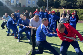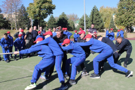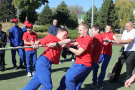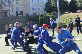 После поздравлений, все участники приняли участие в соревнованиях по перетягиванию каната. Команды были сформированы из четырёх кадет и их отцов, всего в каждой команде было по восемь участников.