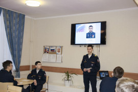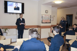 В рамках патриотического воспитания в 9 «Г» классе Ставропольского президентского кадетского училища прошёл классный час «Офицеры-россияне, герои нашего времени», посвящённый военнослужащим, отличившимся во время военной спецоперации на Украине. Провела это мероприятие классный руководитель Ольга Фёдоровна Удовиченко.