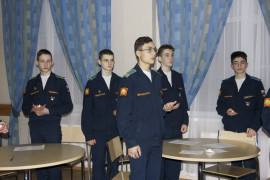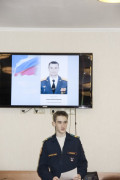 Кадеты подготовили сообщения, в которых рассказали о тех офицерах, кто был в числе первых восьми удостоенных звания Героя России указом Президента РФ от 4 марта 2022 года. Ведь это настоящие примеры доблести и отваги, которые никого не оставят равнодушным. Это истории о тех, кто не сдаётся и не падает духом. О тех, кто готов отдать свою жизнь ради победы над нацизмом и ради мира во всём мире. Это Алексей Бернгард, Юрий Нимченко, Алексей Панкратов, Виктор Дудин, Алексей Левкин, Нурмагомед Гаджимагомедов, Антон Старостин, Владимир Жога…