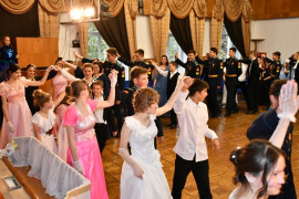 Кадеты познакомились с торжественным полонезом, полькой, падеграсом, котильоном и попробовали свои силы в этих танцах с воспитанницами школы.